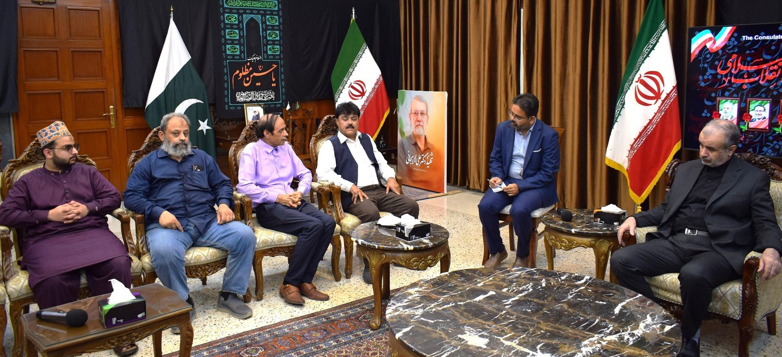 وفد میں معروف اینکر، تجزیہ کار اور ایف ایم 96 سے وابستہ ڈاکٹر زیغم، محترم عمر اور ان کے صاحبزادے بھی شامل تھے۔ ملاقات کے دوران ایرانی قونصل جنرل اکبر عیسی زادے، وائس قونصل غلام عباس اور دیگر حکام بھی موجود تھے۔